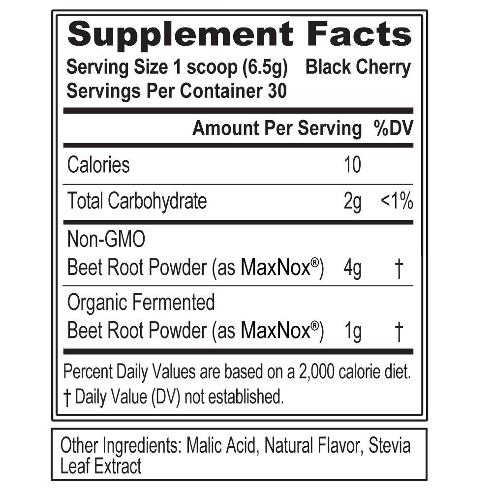β Nitrate-Rich Beets are easily converted to Nitric Oxide by the body, which causes blood vessels to relax and dilate, delivering more nutrients and oxygen to muscles with increase blood flow.
