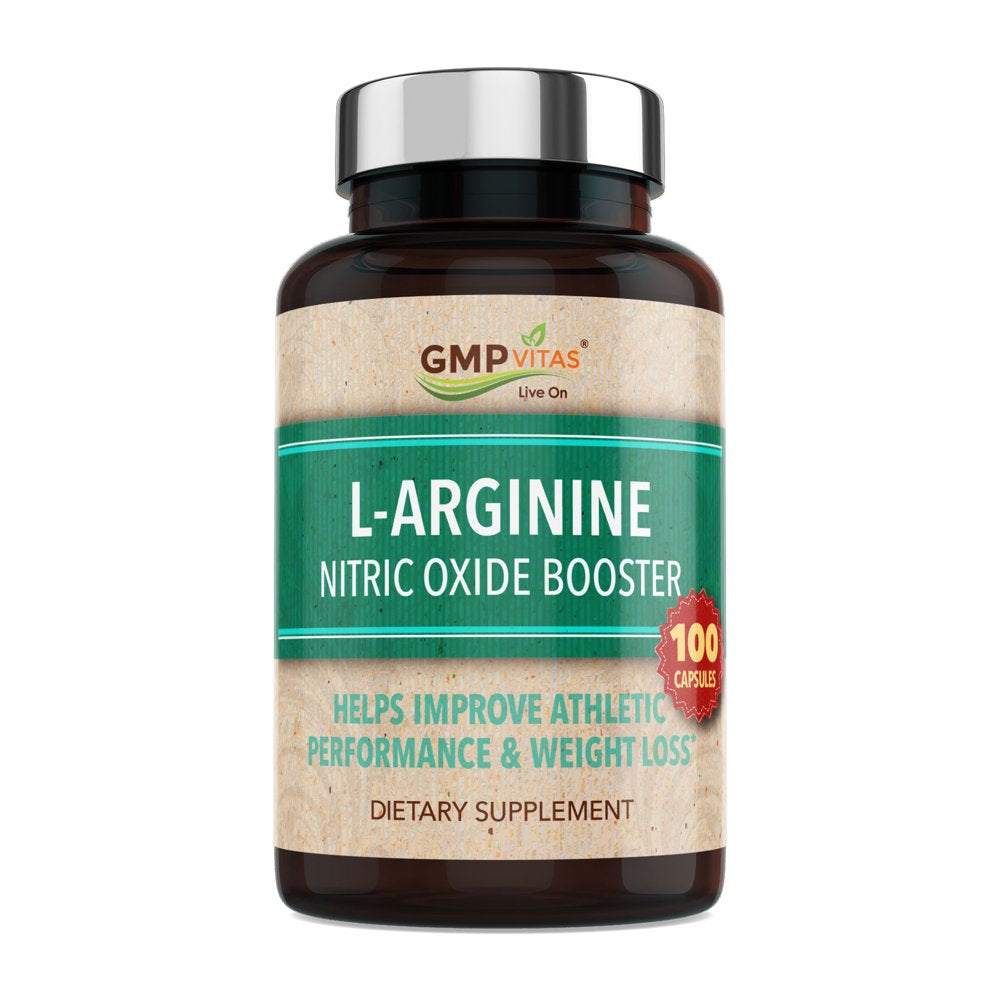 GMP Vitas L-Arginine Nitric Oxide Booster, Helps Enhance Workout Performance, 100 Capsules
