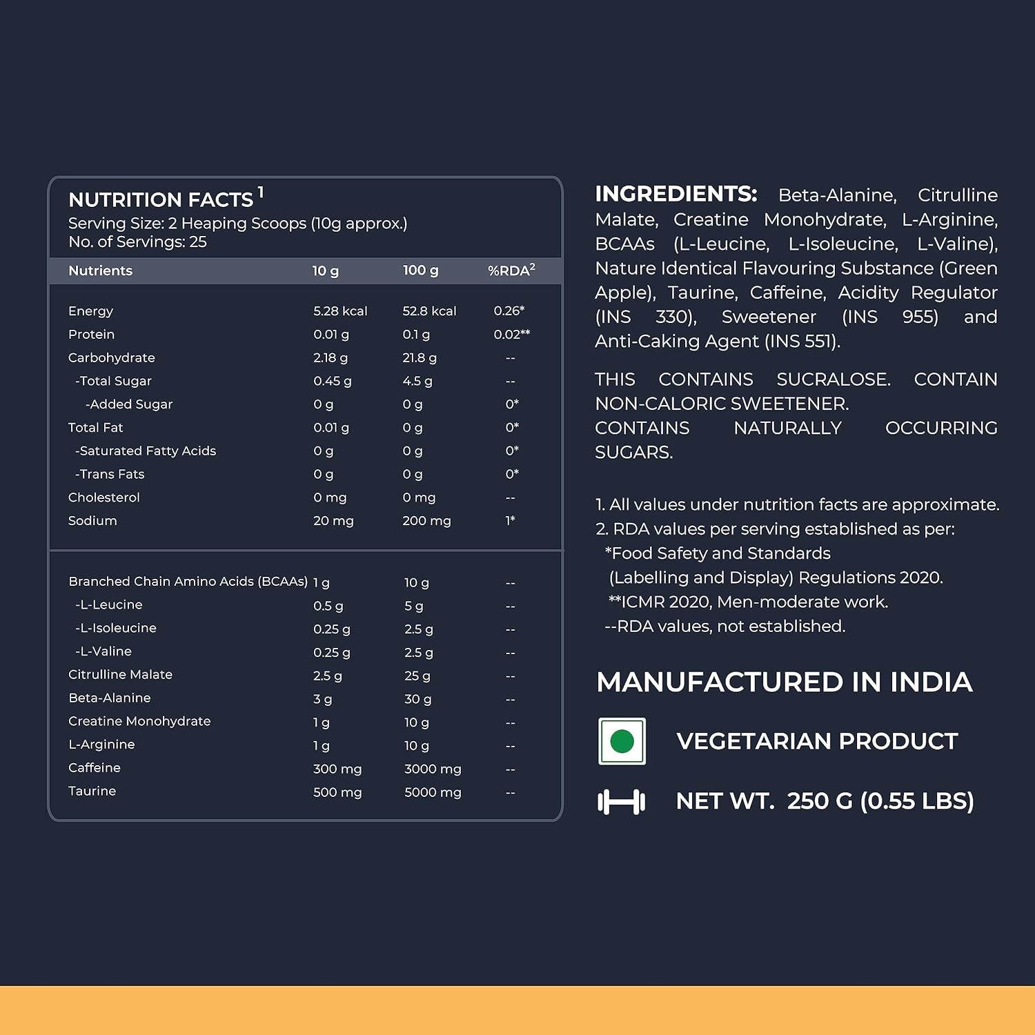 - * [Increased Pump]: L-Arginine and Citrulline Malate gives increased pump and improves blood flow to the muscles. Taurine helps to increase muscle strength and fullness