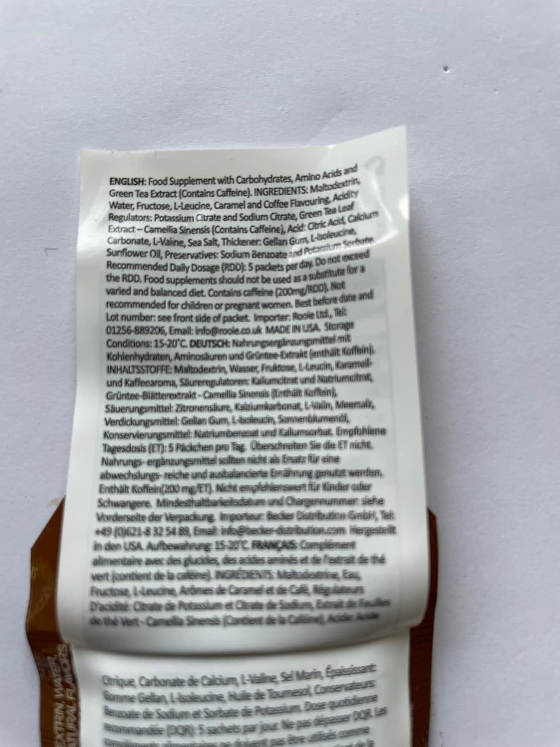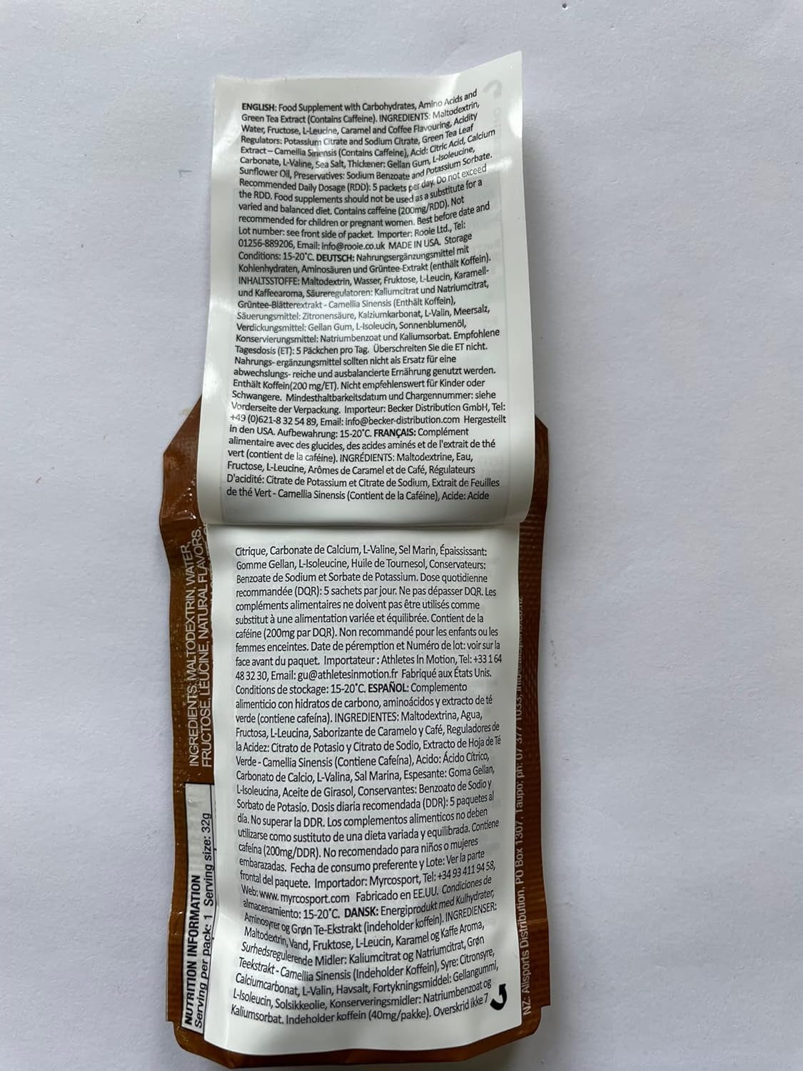 | Item Form | Nutrition Energy Gel |