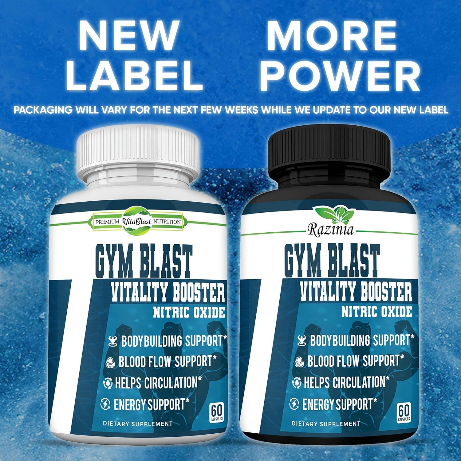 Gym Blast - X10 Strength Nitric Oxide Supplement W/ Beta Alanine, L Arginine, & L Citrulline - Muscle Growth, Pumps, Vascularity, & Energy - Extra Power Pre Workout N.O. Booster & Builder - 60 Pills