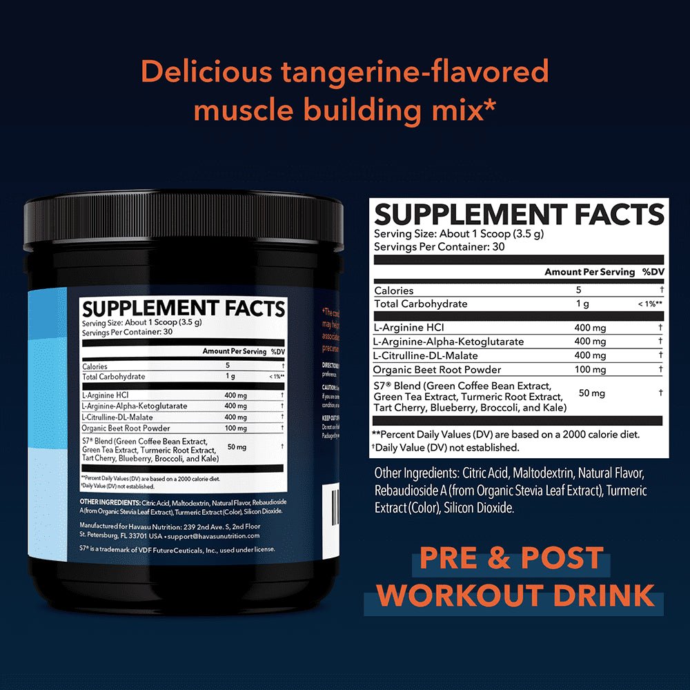 Havasu L-Arginine Powder - Pre-Workout Supplement, Tangerine 3.7Oz