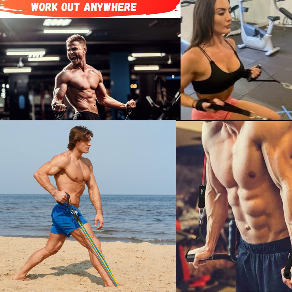 - Personal Home Gym Exercise Equipment- Stay safe and workout at home, in the office, outside or anywhere with Research Labs Resistance bands with handles in place of free weights or dumbbells. Get a whole body workout that will tone, tighten and build muscle.