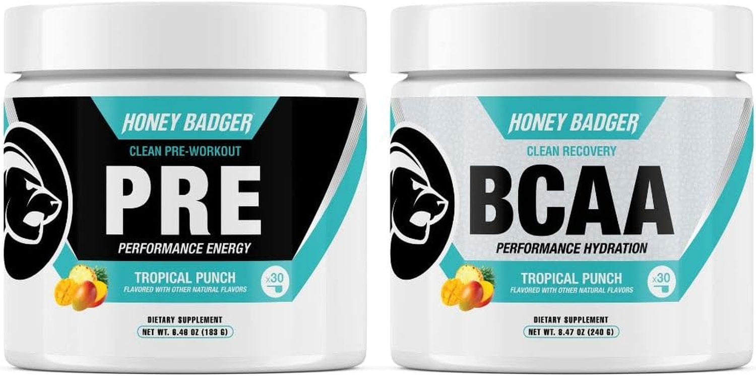 Honey Badger Pre Workout Powder | Vegan Keto Tropical Punch Preworkout | Natural Energy for Men & Women | Beta Alanine, Caffeine & Vitamin C for Immune Support | Sugar Free & Paleo | 30 Servings