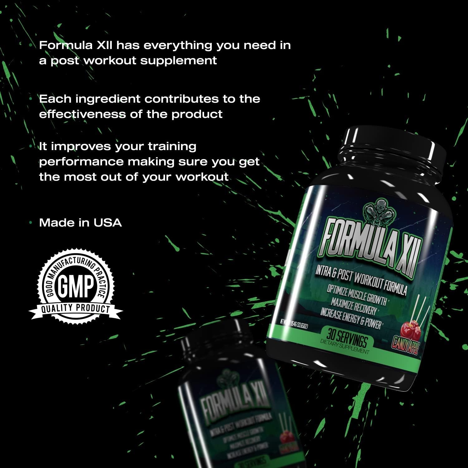 - INTRA & POST WORKOUT FORMULA: Formula XII is a complete all-in-one intra & post-workout supplement. It contains all the ingredients and nutrients needed for optimal performance, recovery, and muscle growth.