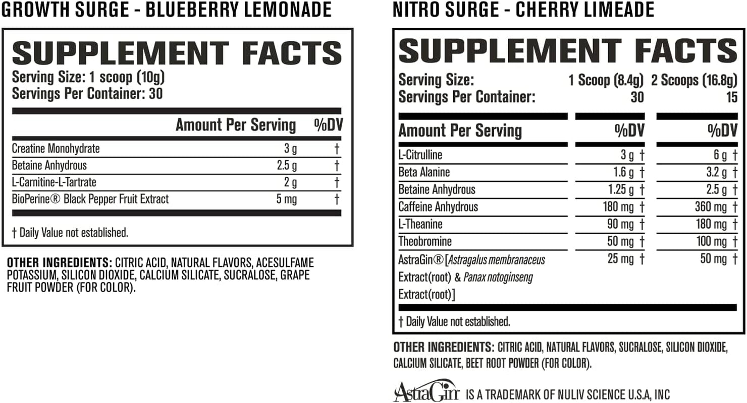 Nitrosurge Pre Workout Supplement, Growth Surge Post Workout Muscle Builder