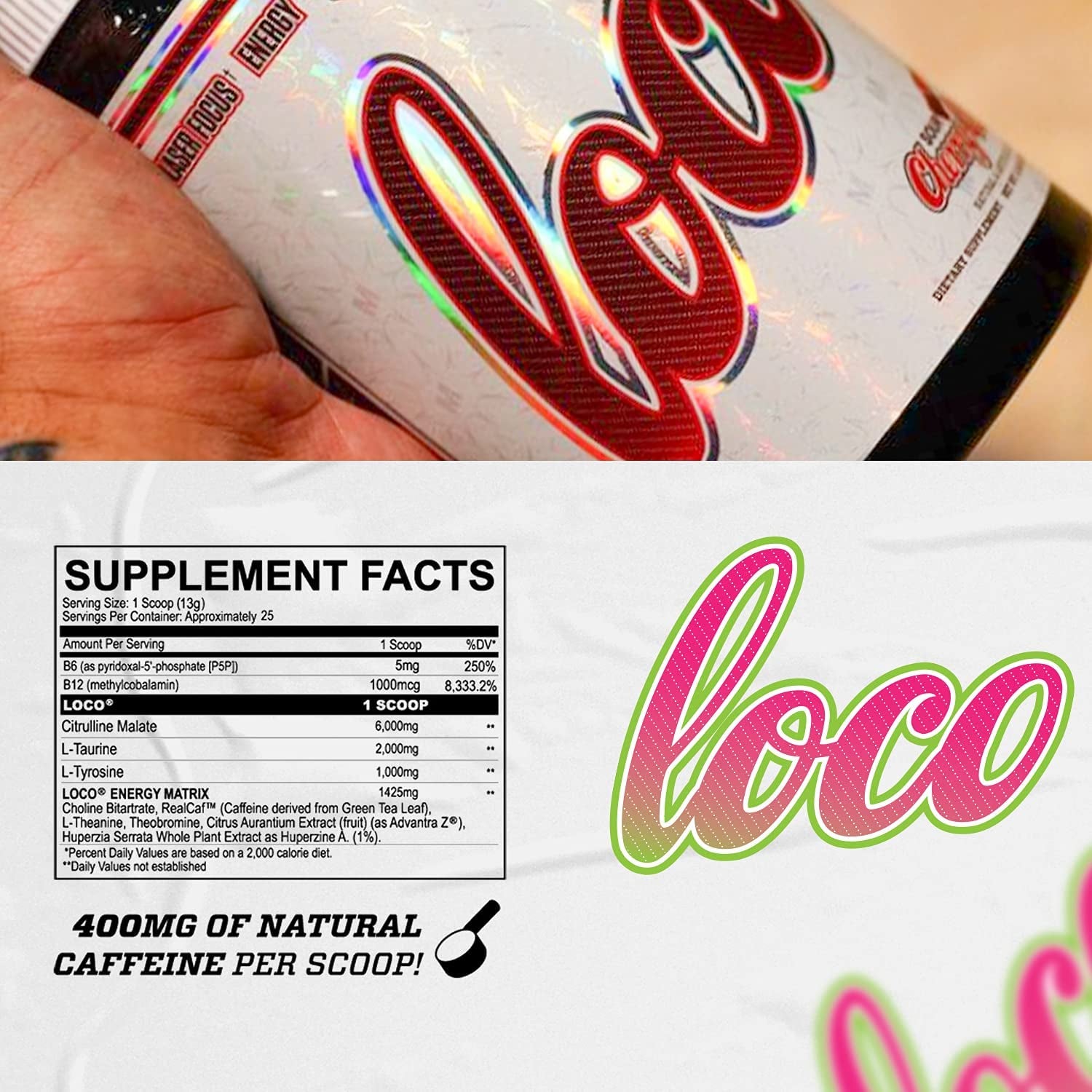 Key Benefits Using LOCOEnergy, focus, strength, power, endurance and skin splitting muscle pumps. | The Superior Tasting Preworkout"Tastes like a strawberry blo-pop.", according to our customers. | All in OneDesigned to deliver all the possible benefits through a premium ingredients matrix. | 400 mg of Natural Caffeine per ScoopMade with the best compounds in the market, packed with our exclusive LOCO Energy Matrix. |