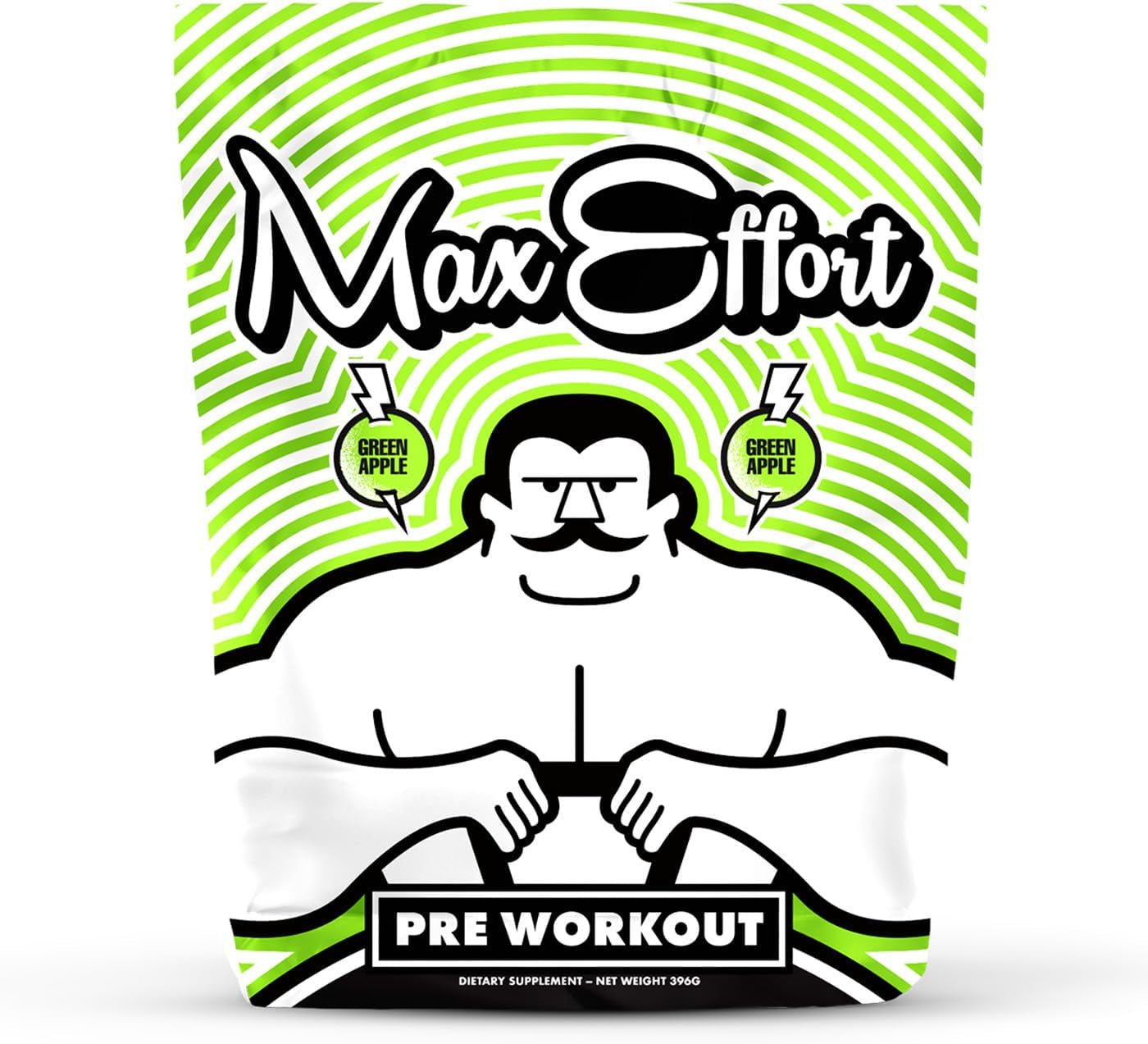 MAX EFFORT Muscle - Pre Workout Supplement, Energy and Focus, Insane Muscle Pump, Clinically Tested Ingredients (Green Apple)