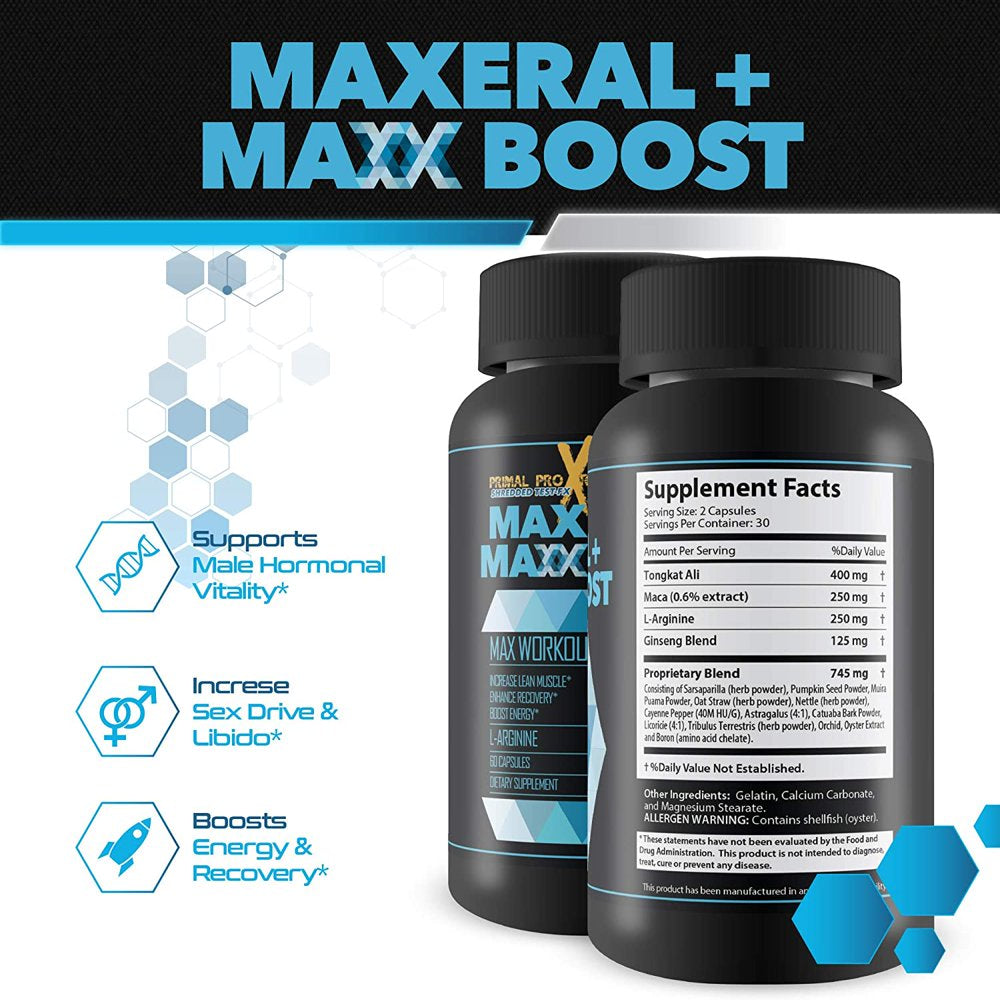 Maxeral + Maxx Boost - Max Workout - Explosive Muscle Growth and Support - Improve Your Gains and Give Yourself an Alpha Edge - Herbal Workout Support Recovery and Blood Flow Blend