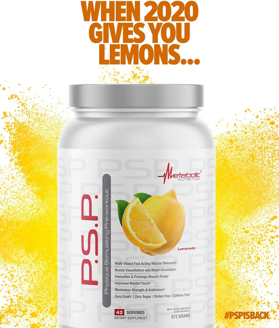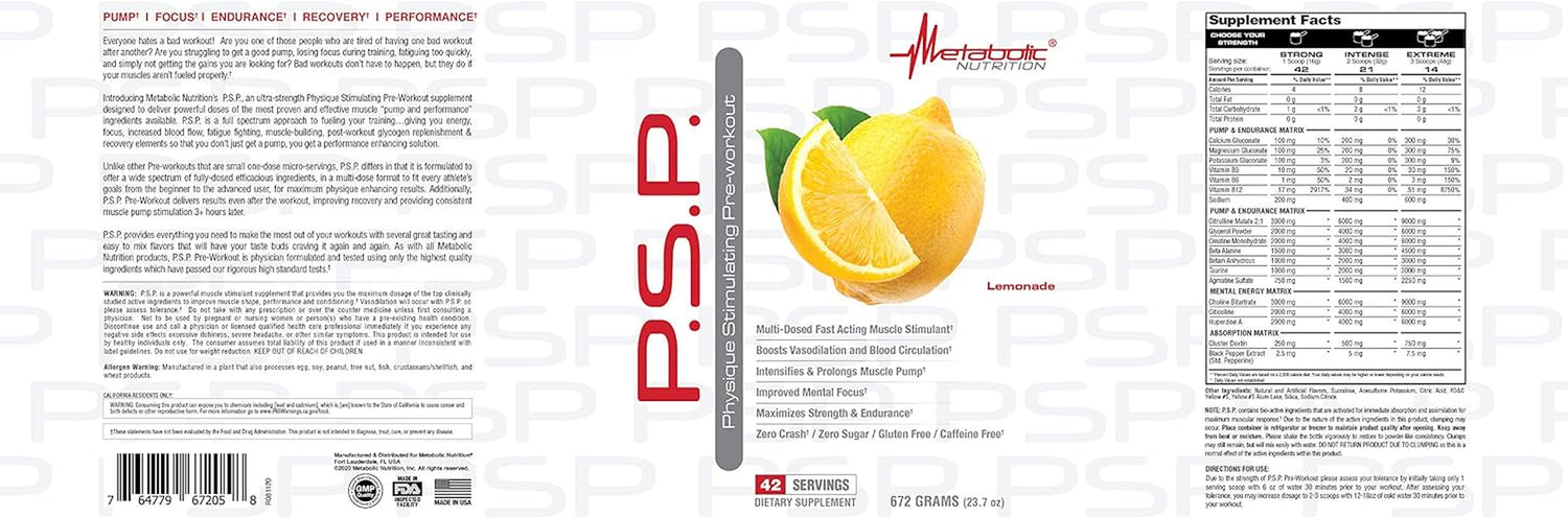 Metabolic Nutrition P.S.P. Physique Stimulating Preworkout 672G Zero Sugar Caffeine Free (Lemonade) - Lemonade is backordered and will ship as soon as it is back in stock.