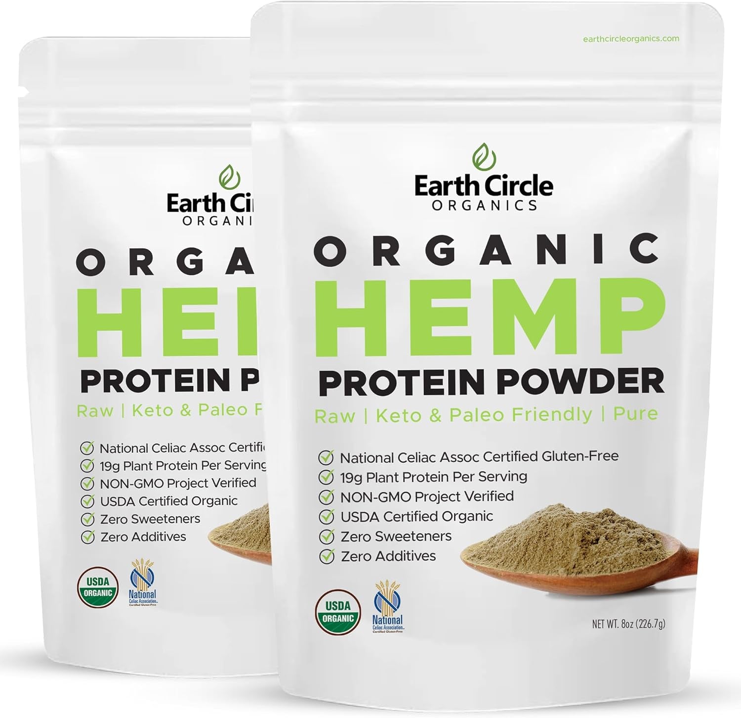 100% PURE PLANT BASED PROTEIN: No Fillers, No Sweeteners, Dairy Free, Vegan, No Artificial flavours, No Sugar or Salt. This is the cleanest Hemp Seed Protein powder on the market. PROTEIN PACKED: 19g of Organic Raw Hemp Vegan Protein per serving. Earth Circle Organics Hemp Protein is USDA Certified Organic, amp; Kosher with 10 essential amino acids, Magnesium and an excellent source of omega-3 fatty acids. ENHANCE YOUR DIET & TURBO-CHARGE YOUR ATHLETIC PERFORMANCE Ideal for healthy, on-the-go nourishment for men, women, and kids. Helps with building muscle and weight loss. Ideal for busy moms, dads, athletes or students with hectic lifestyles. Perfect meal replacements added to smoothies, your favourite protein shake or as a pre and post workout drink.Won't upset your stomach like other Protein powders ALL-NATURAL HEMP VEGAN PROTEIN POWDER