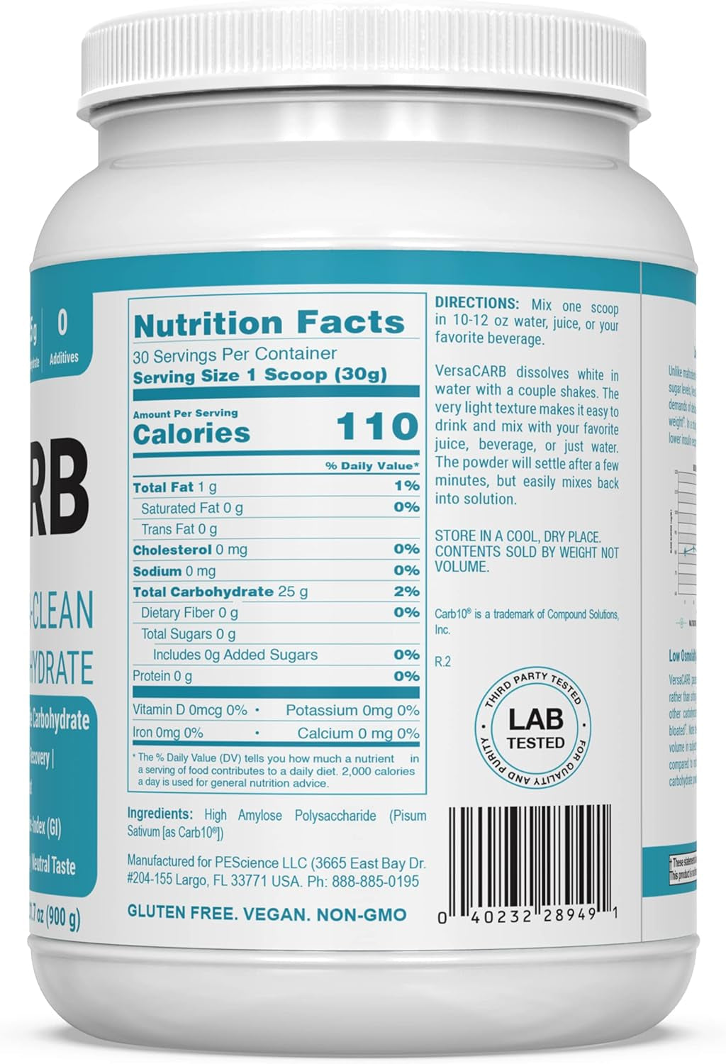 • VEGAN | GLUTEN FREE | NON-GMO - Versacarb utilizes a starch harvested from peas, so it is completely natural & vegan.