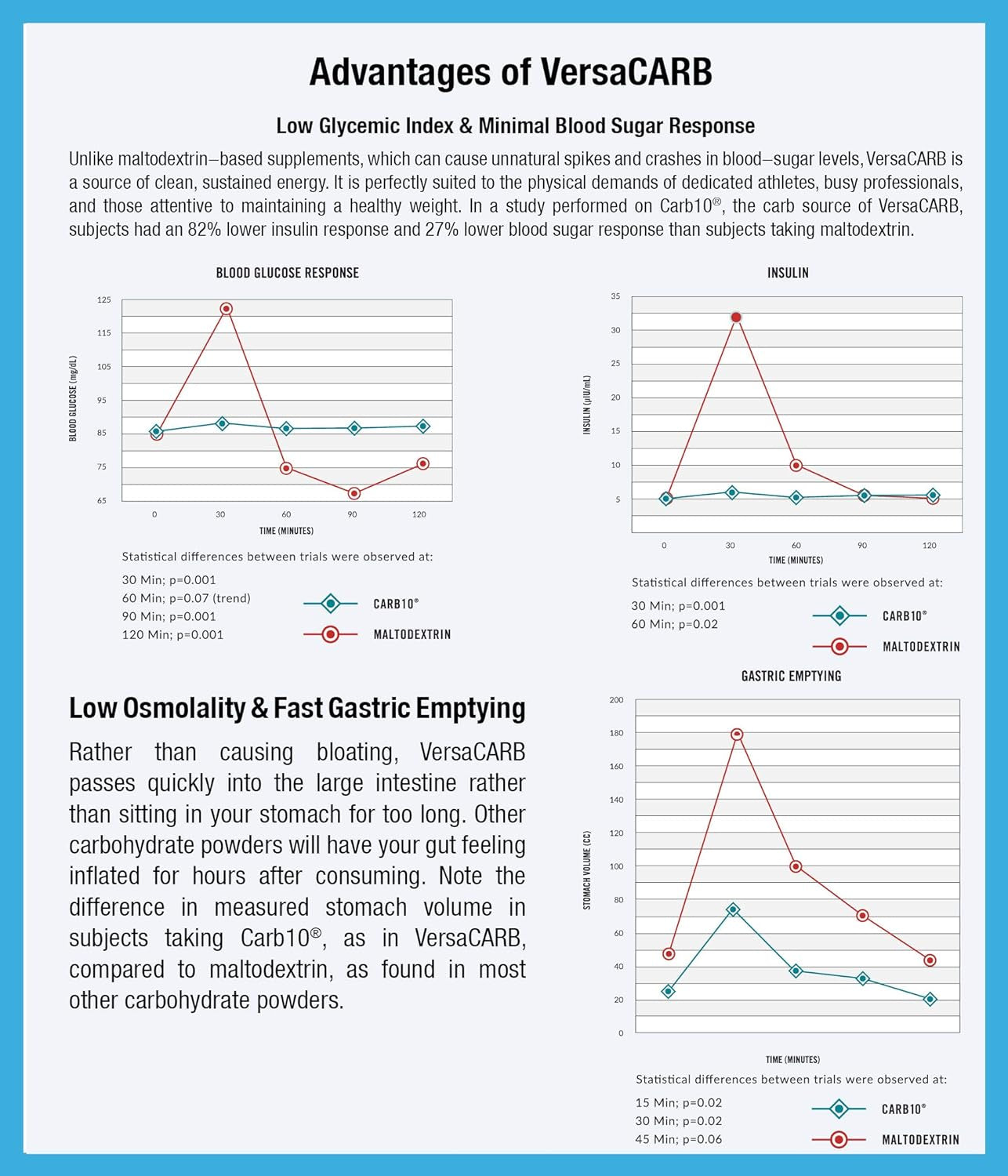 • LOW GLYCEMIC CARBOHYDRATE POWDER - Versacarb has been shown to have 82% less insulin response and 27% lower blood sugar response compared to maltodextrin.