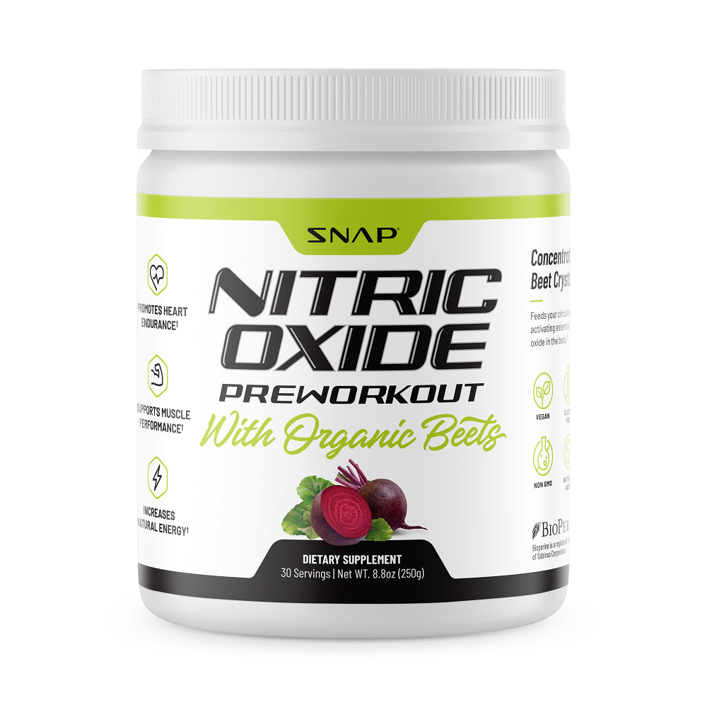Perform at your peak during every workout session by powering up with Snap Supplements nitric oxide pre-workout beetroot powder. It activates essential nitric oxide production to help you crush your workouts. This beetroot powder pre-workout contains nitrate-rich beets and stimulating B-vitamin compounds that prolong your aerobic performance. Another component is bioavailable amino acids, which aid in building muscles and optimizing your workout efforts. Beetroot crystals in this organic pre-workout powder maximize oxygen utility in runners for added stamina. Various nutrients expand blood flow, deliver vital nutrients and eliminate fatigue for post-workout recovery. Easy to prepare, just add one scoop of this pre-workout supplement into 6-8 oz hot or cold water or your preferred drink and shake vigorously to dissolve. One scoop of this formula has nutrients equivalent to four beets. Vegan, non-GMO, gluten-free and free of added sugar, it suits various types of special diets. Enjoy 30 servings of the nutrients and organic and natural beetroot flavor in one jar. Snap Supplements Nitric Oxide Pre-Workout Beet Root Powder, Cardio Health Supplement, 30 Servings - 1 Jar.