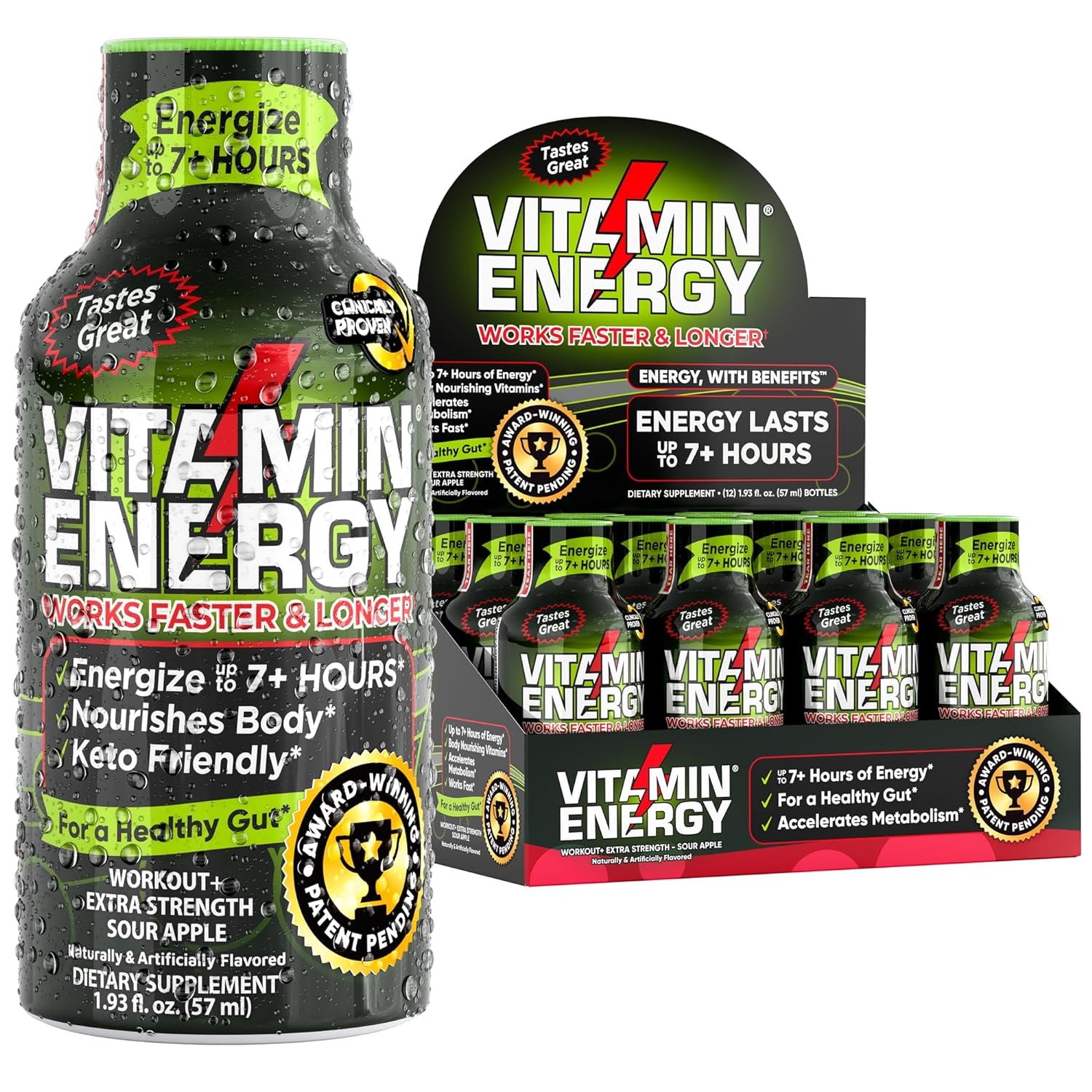 - Powerful energy boost: At only 2 oz per bottle, Vitamin Energy shots are a convenient source of vitamins that boost energy and focus for up to 7+ hours; each low- calorie shot contains 260mg of natural caffeine with zero sugar and zero carbs