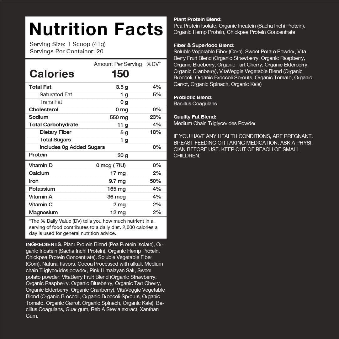 - Premium Vegan Protein Powder – 20g of plant based protein from a unique blend of Pea, Organic Sacha Inchi, Organic Hemp and Chickpea. We carefully selected each ingredient to ensure you have all the essentials needed to support your lifestyle.