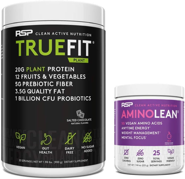 RSP NUTRITION Vegan Aminolean Pre Workout Energy (Acai 25 Servings) with Truefit Vegan Protein Powder (Salted Chocolate 2 LB) is backordered and will ship as soon as it is back in stock.