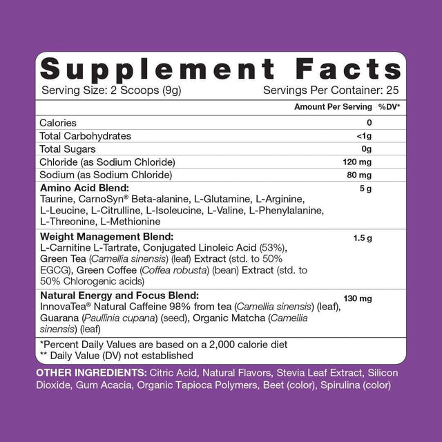 - All Natural Anytime Energy - 130mg Energy & Focus blend made from fermented tea leaves, guarana and organic matcha to support energy levels, focus, and alertness.