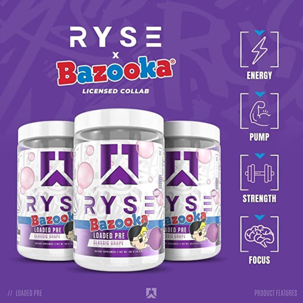 - RYSE Loaded Pre Workout, Bazooka Grape, 30 Servings: