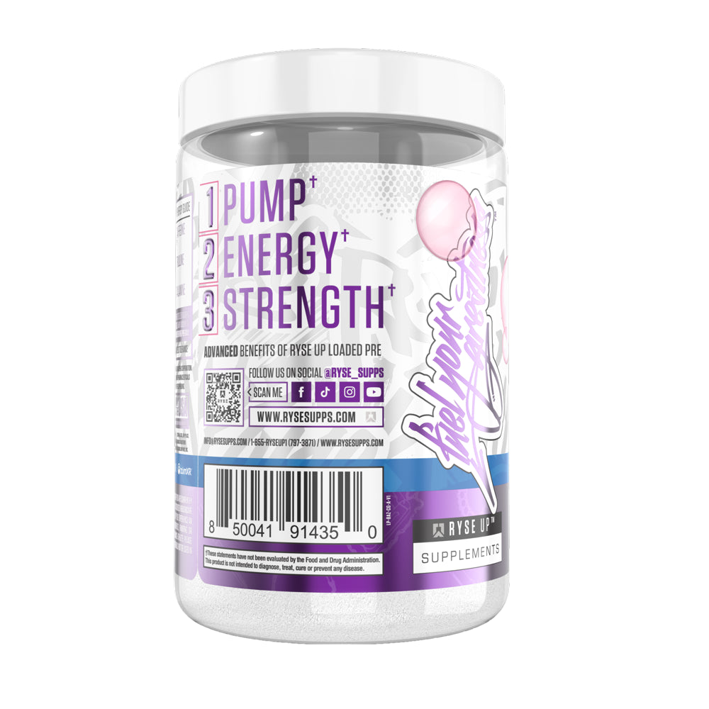 With RYSE Loaded Pre Workout, Bazooka Grape, experience the power of science and flavor combined! RYSE Loaded Pre-Workout utilizes clinical doses of research-backed ingredients to make sure that you are getting the most out of your workouts. Our unique formula produces a surge of pumps, energy and focus in the gym. This is all accomplished without the dreaded crash afterwards.