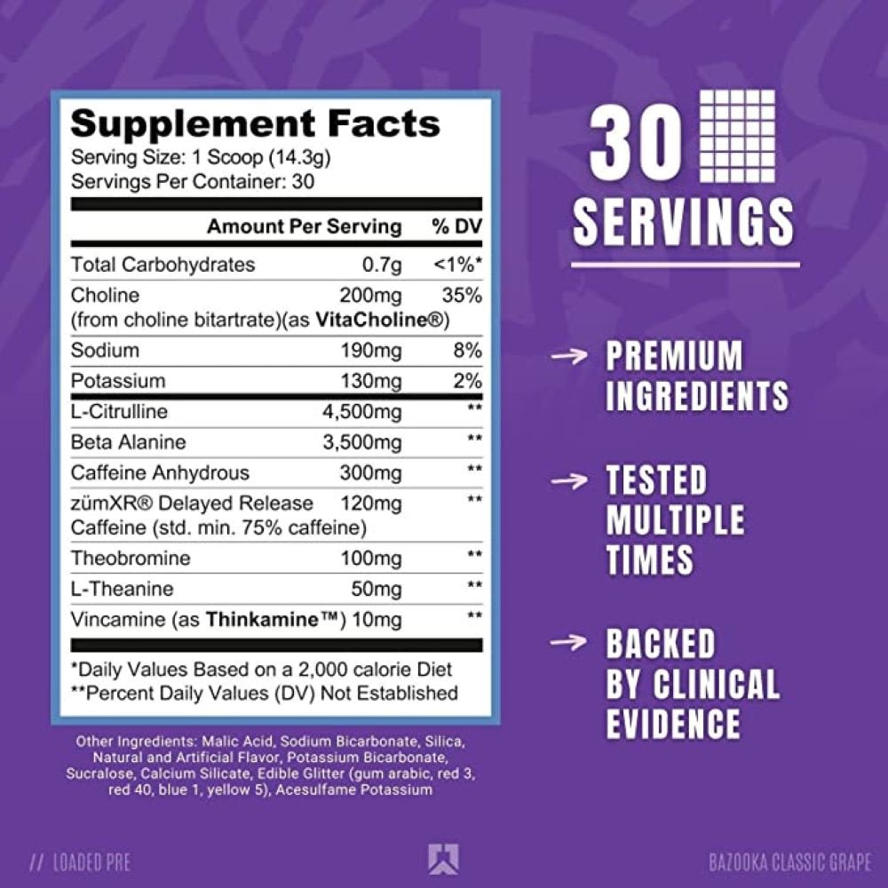 RYSE Supplements Loaded Pre Workout, Bazooka Grape, 30 Servings - Grape is backordered and will ship as soon as it is back in stock.