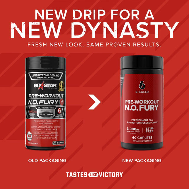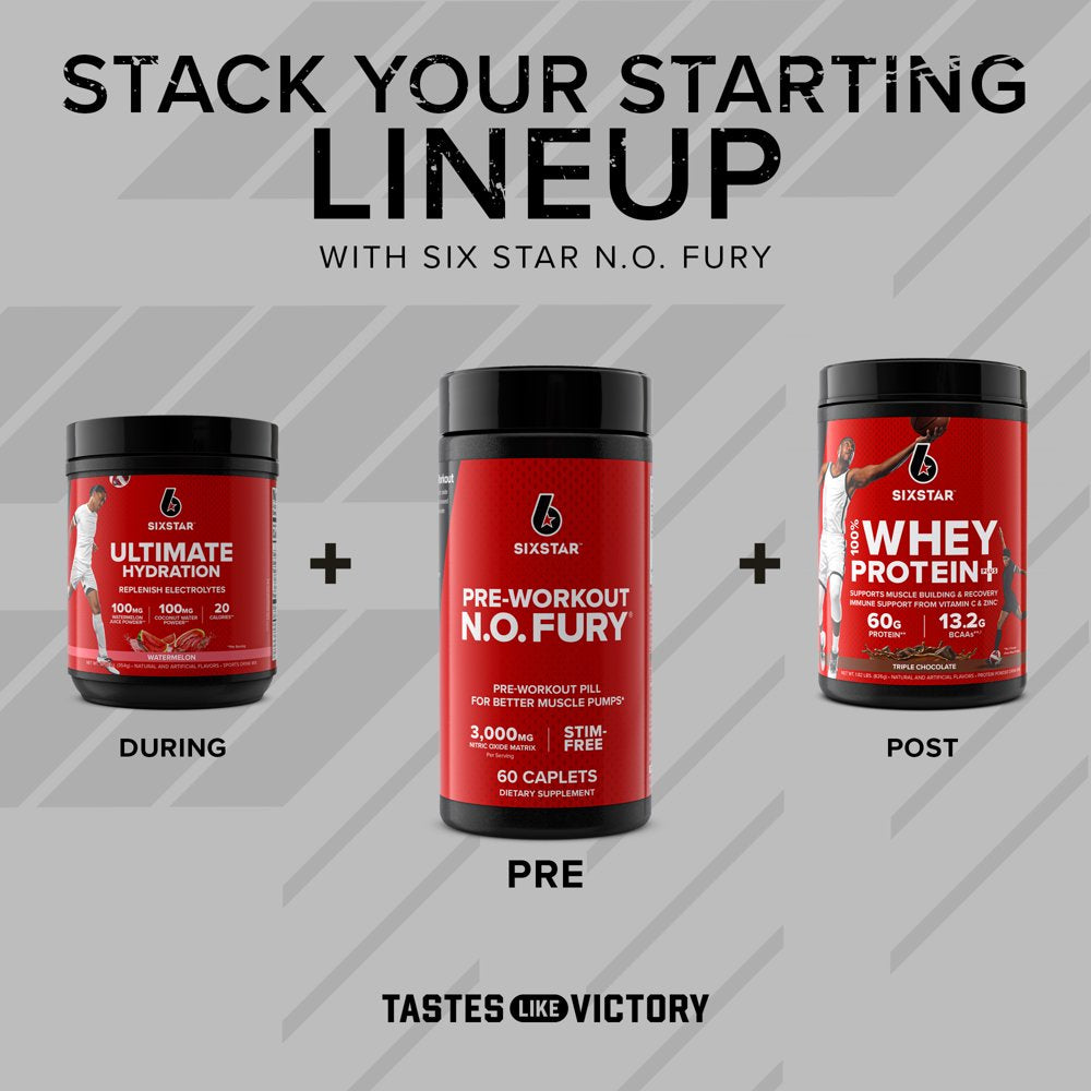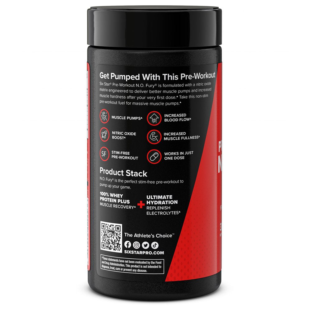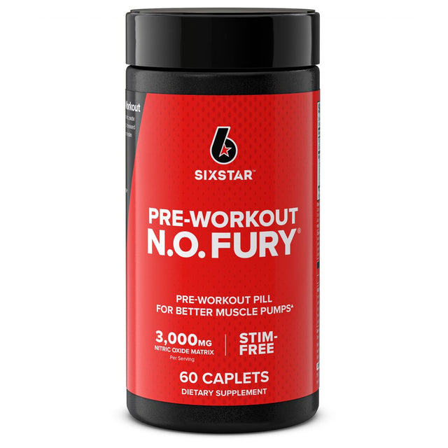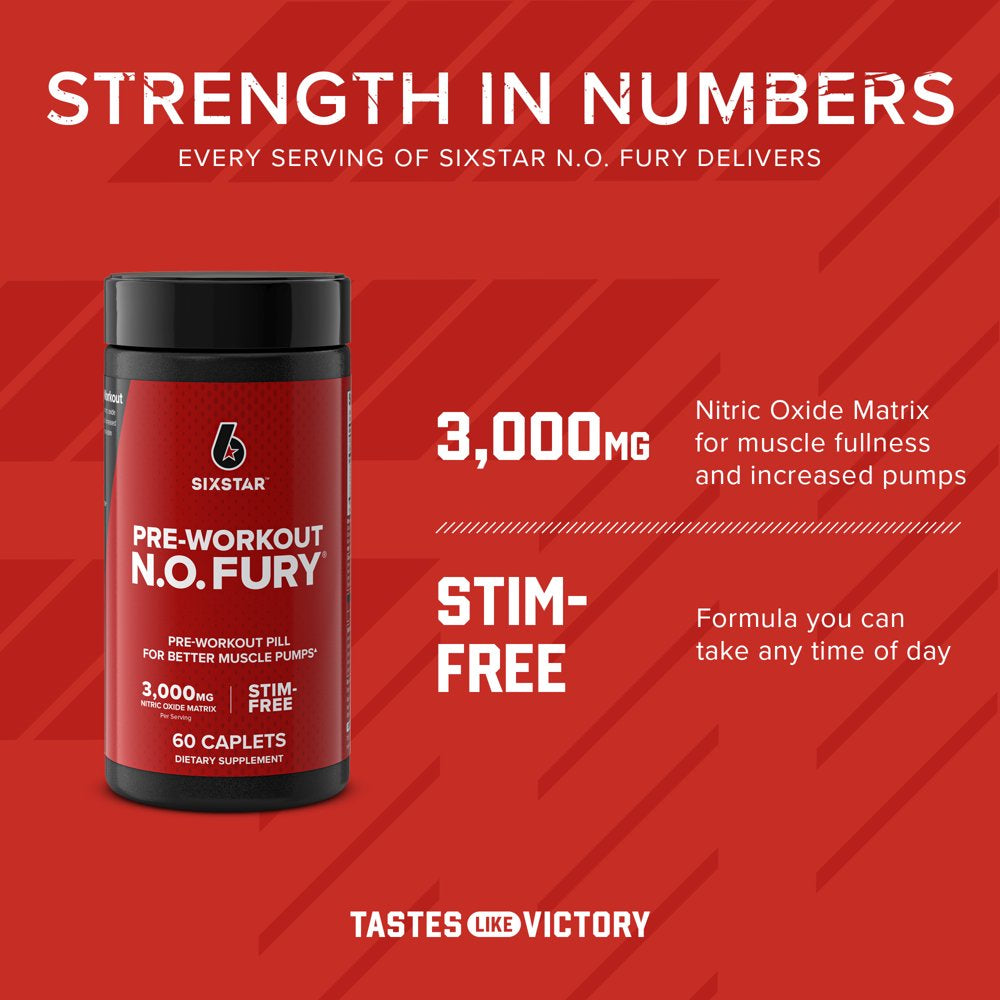 Six Star N.O.Fury Pre-Workout Pill, Stim-Free 3000 Mg Nitric Oxide, 60 Ct, 20 Servings
