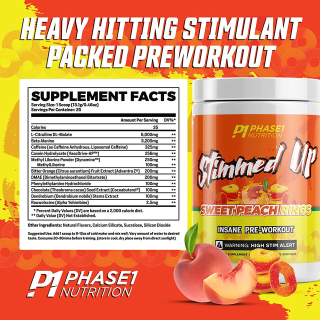 Stimmed up Insane Pre Workout 325Mg Caffeine for Hyper Focus, Energy Boost, and Extreme Pumps- High Stim Preworkout with Beta Alanine, Caffeine with No Artificial Flavor (Sweet Peach Rings)