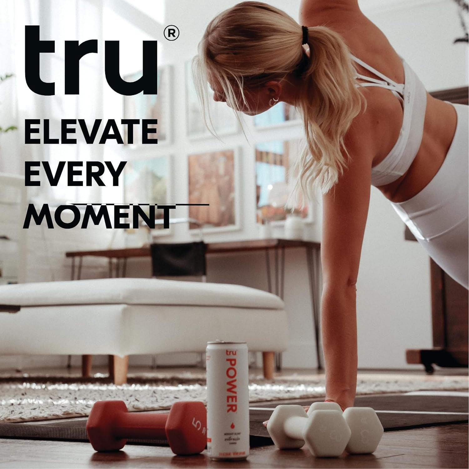 - POWER DRINK - Blended with green coffee bean extract, natural caffeine, and amino acids, Tru Power Seltzer is a caffeinated sparkling water. Often enjoyed as a clean pre workout drink, Tru offers BCAA's in a naturally flavored sparkling juice.