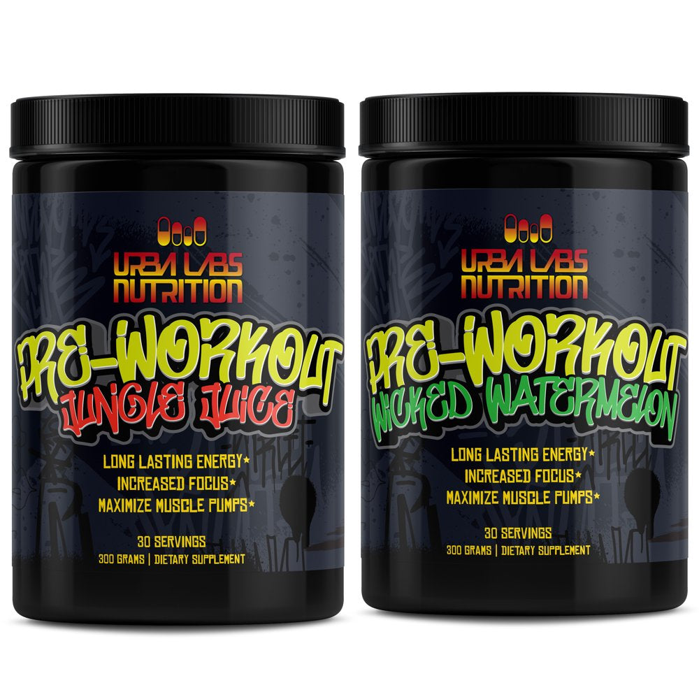 Urbalabs Superstrong Extreme 2 Pack Pre Workout Powder Wicked Watermelon & Fruit Power Punch Pump up Beta Alanine, L-Taurine, Caffeine Extreme Energy & Focus, Nitric Oxide & Citrulline