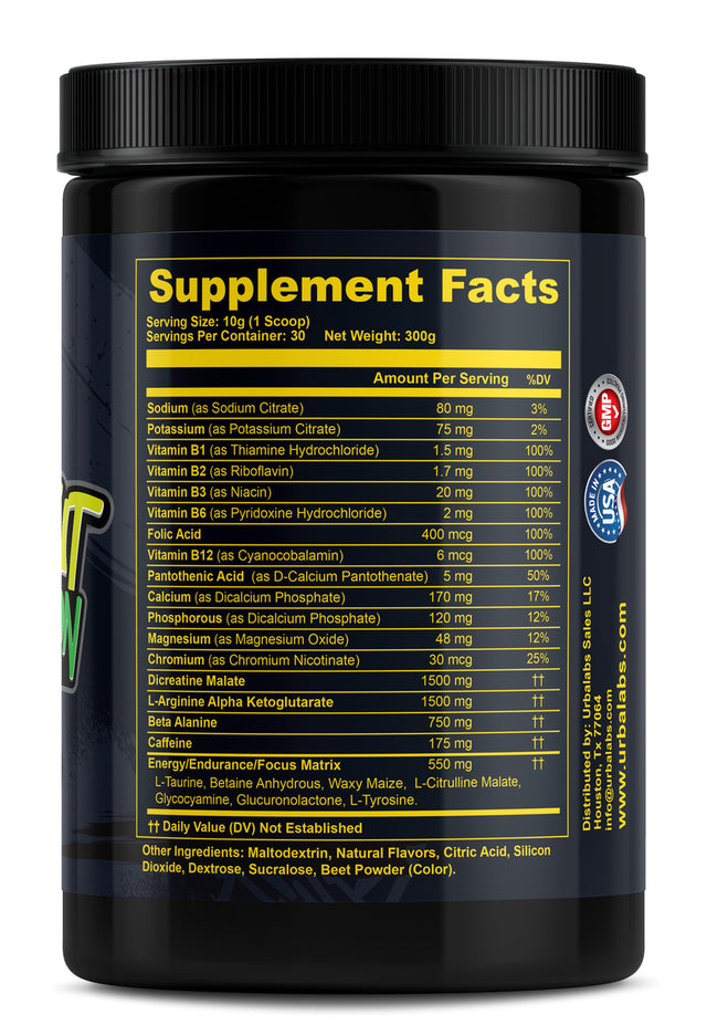 Urbalabs Pre Workout Powered emerges as a powerhouse in the realm of pre-workout supplements, boasting cutting-edge formulation. Tailored to cater to athletes and gym enthusiasts of all levels, this dynamic product propels energy levels and readiness to unparalleled heights. Notably, it sidesteps the pitfalls of post-use crashes or exhaustion. Moreover, its exquisite flavor profile places it among the most delectable pre-workout powders available. Elevating pre-workout performance is our foremost pursuit at Urbalabs. Our quest for excellence drives us to curate an elite pre-workout blend crafted exclusively from top-tier ingredients. Think Beta Alanine, augmenting training capacity; L-Taurine, facilitating cell hydration and electrolyte transport; and don't overlook Nitric Oxide & Citrulline, which contribute to an extraordinary pump, enhancing respiration, blood circulation, oxygen supply, energy levels, and ultimately fashioning a pre-workout formula tailored for both women and men, igniting gym envy. A symphony of natural components collaborates in Urbalabs' Pre Workout formula to galvanize your journey toward peak performance and smashing personal records in the gym. Our team of engineers has meticulously orchestrated this fusion of ingredients that harmonize to amplify Performance, Strength, Pump, and Endurance. Rest assured, Urbalabs' manufacturing takes place within an FDA-registered facility in the USA, strictly adhering to GMP guidelines. Our products undergo rigorous third-party laboratory testing to ensure uncompromised purity and safety. Tailored for Vegans, Vegetarians, and Halal preferences, our offerings are devoid of pork/beef gelatin, eggs, nuts, fish, lactose, cereals, GMOs, and other superfluous preservatives. Our product selection is driven by genuine affection, and we wholeheartedly endorse every item we offer. Urbalabs takes the gamble out of your purchase with our money-back guarantee. Our commitment extends to all our weight loss pills, supplements, and products. Should you have inquiries or require assistance, our dedicated customer service team is at your beck and call. Recognized for their excellence, they're ready to swiftly address any concerns. Trust Urbalabs, an esteemed name in the industry, to guide your fitness journey.