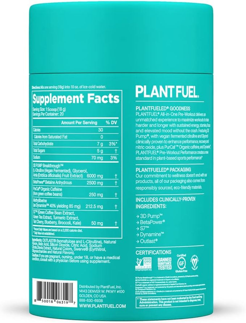 - 100% PLANT-BASED – All PLANTFUEL products are 100% plant-based, certified vegan and non-GMO verified. This is the perfect one-stop pre-workout supplement for active individuals on a mission to better themselves and the planet with a powerful and sustainable pre-workout solution.