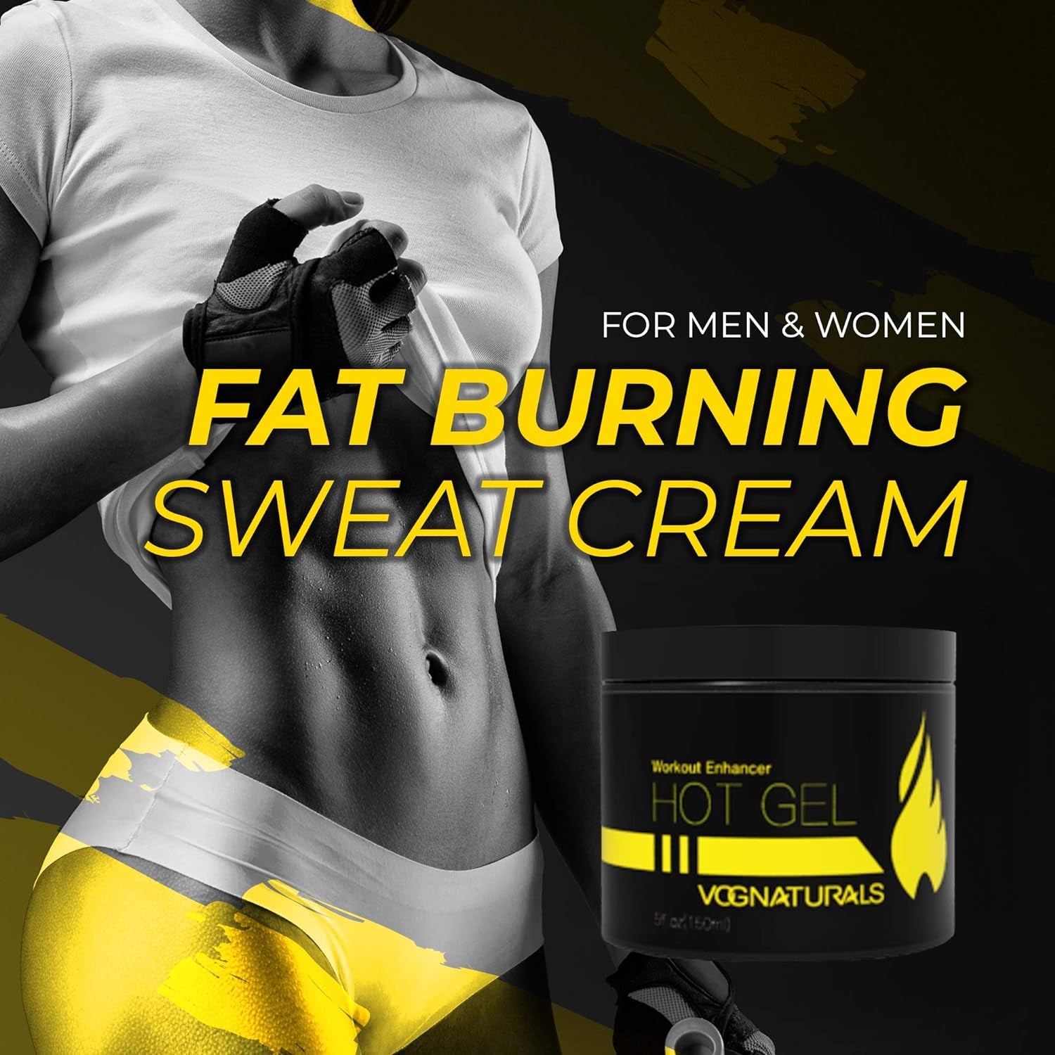 Vog Naturals Hot Gel Workout Enhancer - Fat Burning Sweat Cream for Men & Women - Hot Cream Cellulite Treatment - Belly Fat Burning Cream - Natural Sweat Workout Enhancer (Bottle)