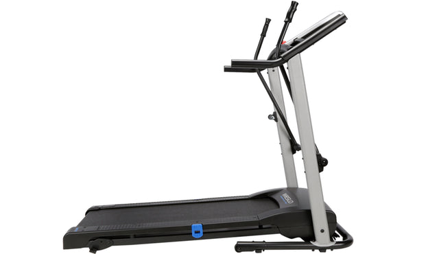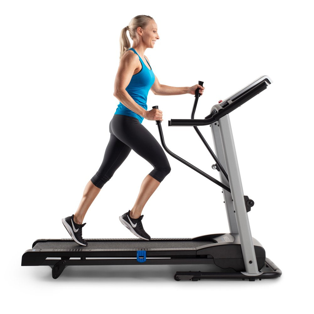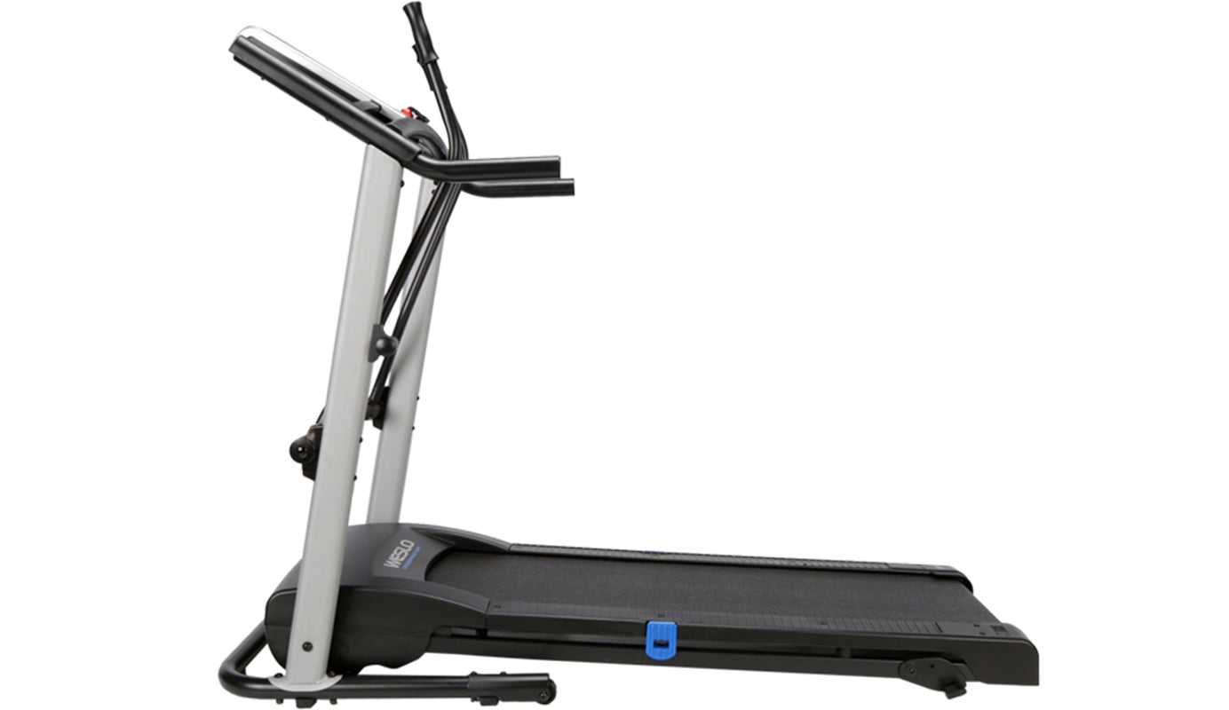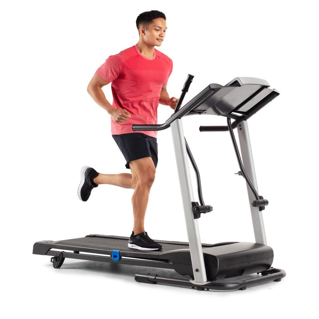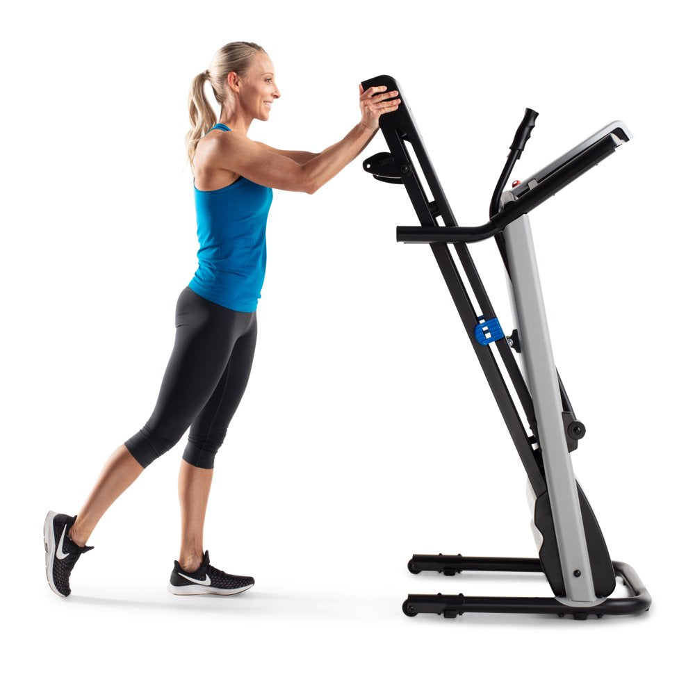 Get a total body workout on the Weslo CrossWalk 5.2t Folding Treadmill. A Bluetooth smart connection makes it easy to connect to your iFIT account (sold separately). Turn your treadmill into the ultimate fitness companion. Experience the difference that in-home personal training can make. Choosing your favorite coach to lead you towards success. Travel across the world for an exhilarating at-home workout experience. Participate in virtual studio classes led by charismatic trainers. Enjoy personalized fitness and diet tips and daily suggested workouts, all from the comfort of home. Burn extra calories and tone your arms with integrated CrossWalk Upper Body Resistance Arms. Easily adjust your machine’s manual incline to add a level of difficulty to your training. Comfort cell cushioning protects your joints as you run, making for a more enjoyable exercise experience. An Impulse motor provides a reliable ride with every step. When you are done working out, use your machine’s innovative SpaceSaver design to fold your tread deck up and out of the way.