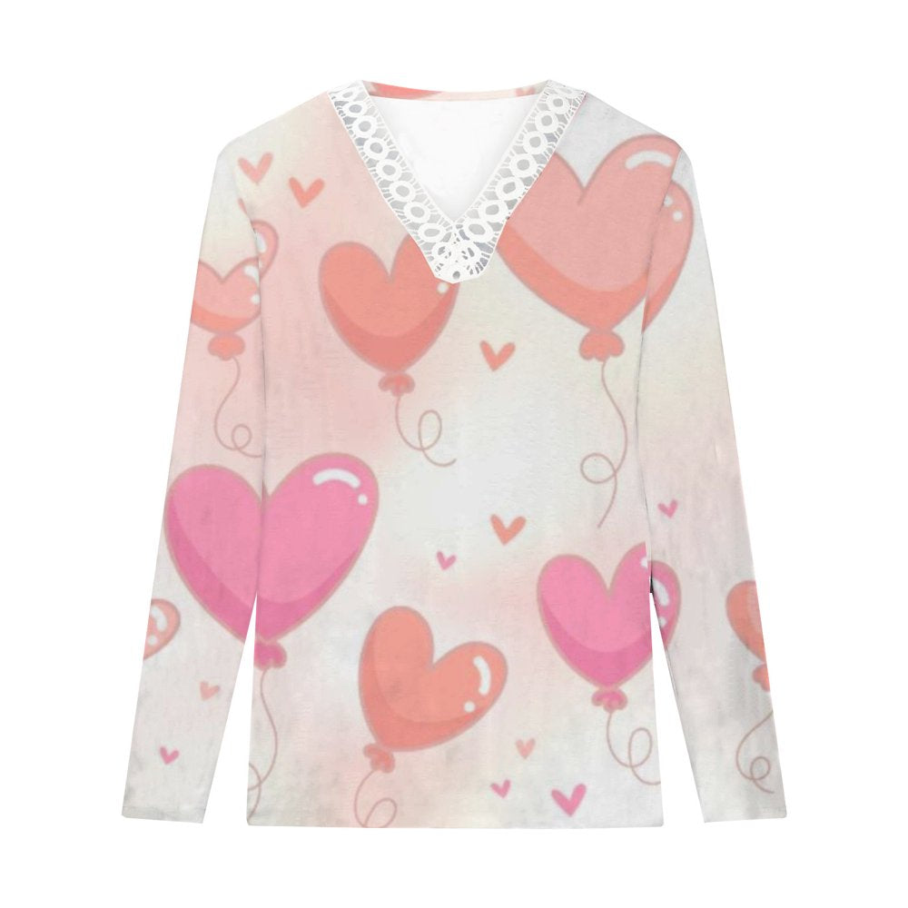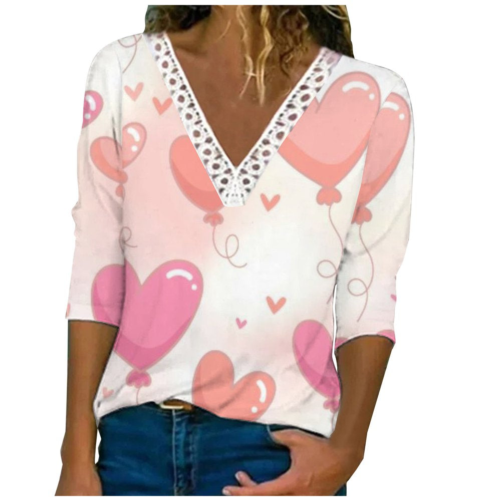 ZQGJB Valentines Day Love Heart Pattern Tops for Women Casual Dressy Lace Crochet V Neck Graphic Workout Tees Shirts Oversized Basic Tunic Shirts(Hot Pink,Xxl)