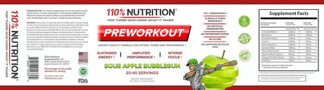 110% Nutrition Preworkout (Sour Apple Bubblegum, 20-40 Servings)