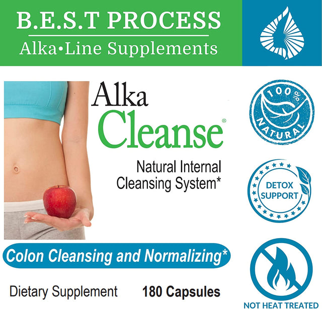 Alka•Cleanse Best Process Alkaline — Herbal Detox Colon Cleanse & Digestive Distress Formula — Psyllium Husk, Probiotics, Enzymes & Herbs