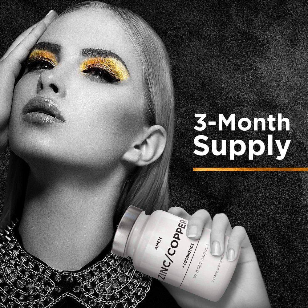 Amen Zinc & Copper, Probiotics 2 Billion CFU, 3-Month Supply, Zinc Picolinate, Vegan, Non-Gmo, 90 Ct