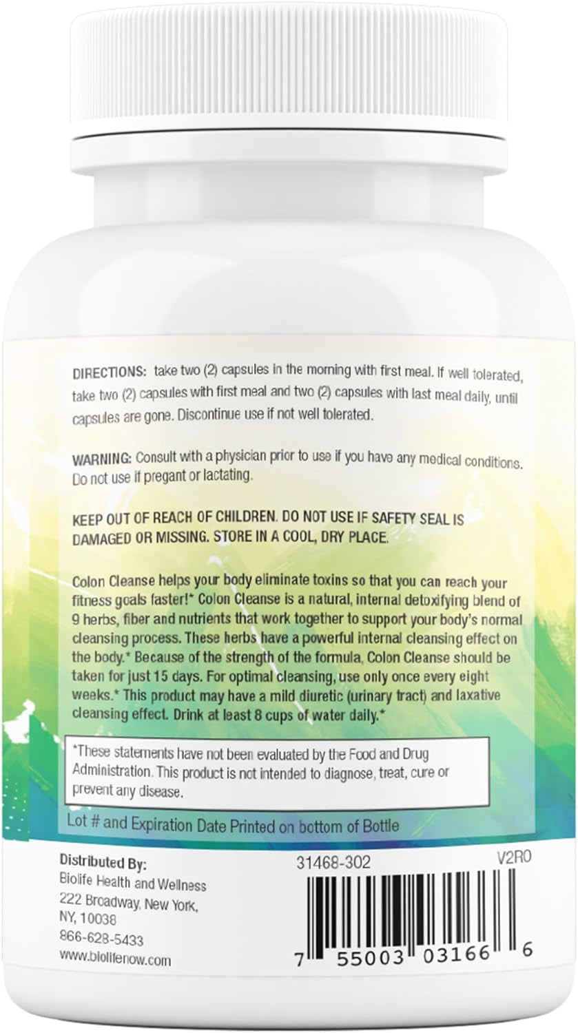- MADE IN USA/ YOUR 30 DAY SUPPLY: Proudly made and packed in USA, Biolife Colon Cleanse is your ultimate solution to a healthy tummy. The supplement bottle comes with a 30 days supply of 60 Colon Cleanse capsules.