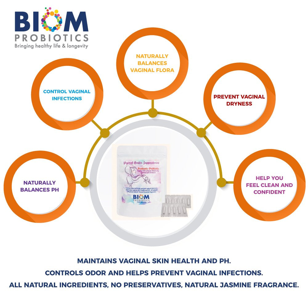 - PROBIOTIC SUPPOSITORY FOR WOMEN: Biom vaginal probiotic suppository uses patented microbiome formula to nourish healthy vaginal flora, balance pH, reduce vaginal menopause dryness, and maintain vaginal odor, helping you feel clean, fresh, and confident; This Lactobacillus suppository uses probiotics, prebiotics, hyaluronic acid, and lactic acid to control odor and protect against vaginal contagions