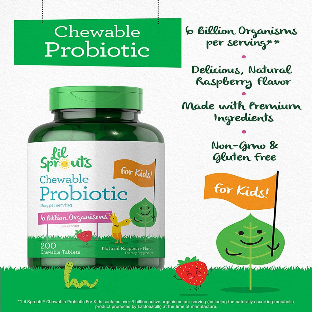 Chewable Probiotics for Kids | 200 Tablets | Natural Raspberry Flavor | by Lil' Sprouts