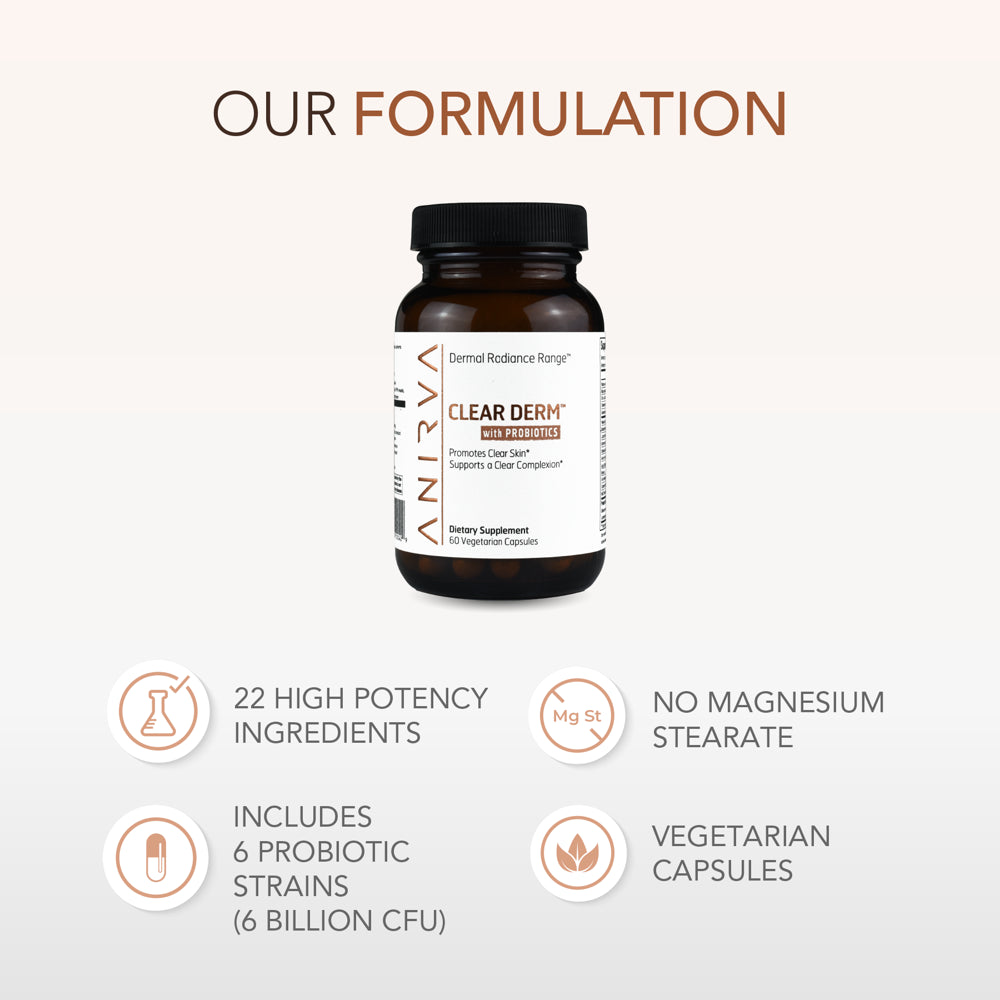 Clear Derm with Probiotics by Anirva - Acne Pills with Zinc, Acne Pill for Hormonal Acne, Supplements for Adult Acne