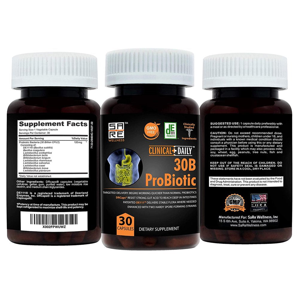 Clinical Daily 30B Probiotic Vegan Probiotics Supplement for Digestive Health 30 Billion Cfus 30 Capsules