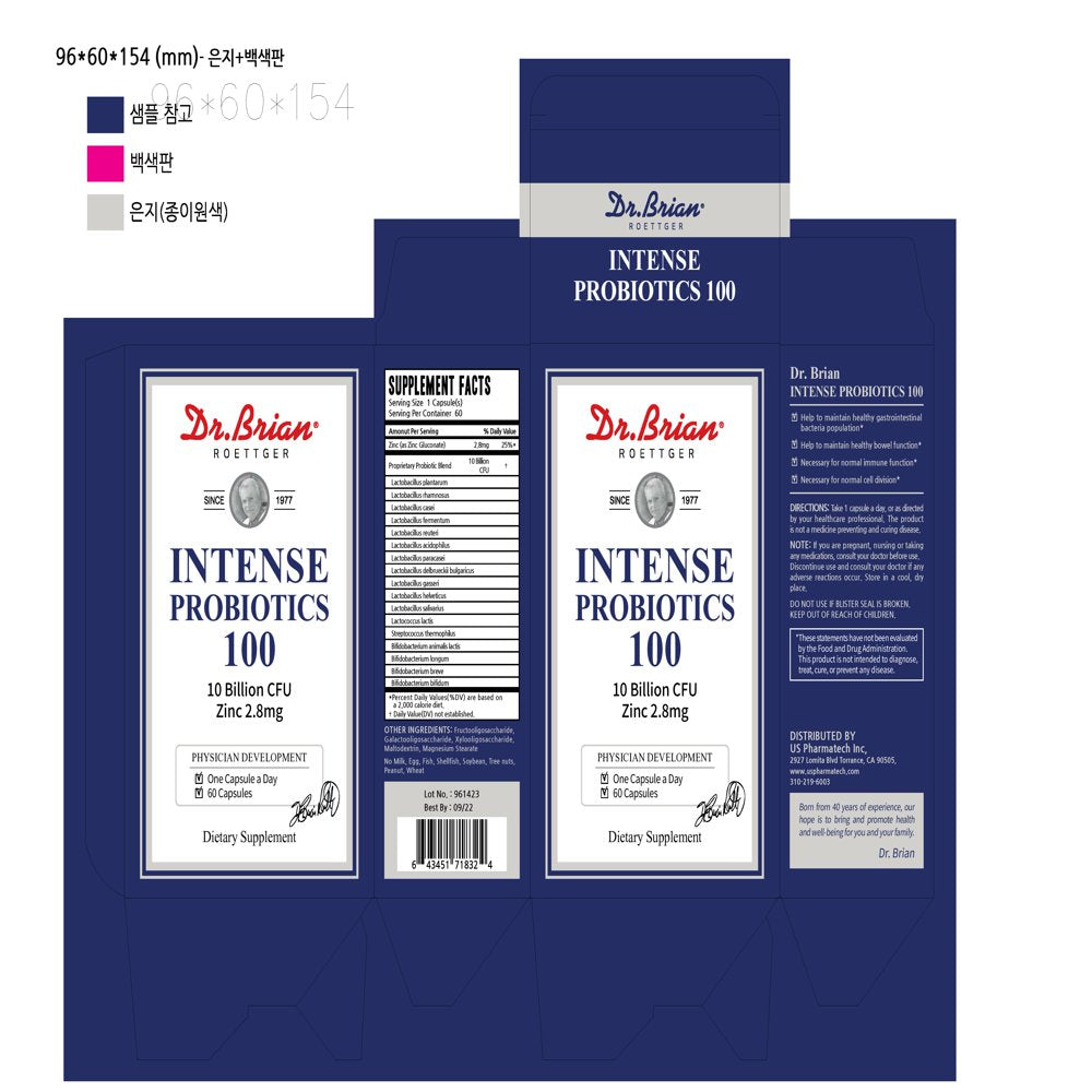 Support intestinal and Digestive Health with Dr. Brian’s Intense Probiotics. Probiotics are made up of good bacteria that helps keep your body healthy and working well. These good bacteria help you in many ways, including fighting off bad bacteria when you have too much of it, helping you feel better and adding an extra layer of defense to your immune system. | 10 billion cfu probiotics | 17 stains probiotics | zinc | DDS-1 probiotic | 60 days serving