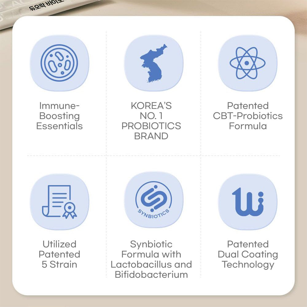 Duolac Bio Guard Prebiotics & Probiotics Powder Stick - a revolutionary on-the-go solution for comprehensive gut health support. Crafted with precision and backed by the expertise of Korea's No. 1 Probiotics brand in Pharmacy channel, Duolac, this powerful supplement combines a CBT-Probiotics formula, patented dual coating technology, and essential nutrients to provide you with the ultimate digestive wellness experience.