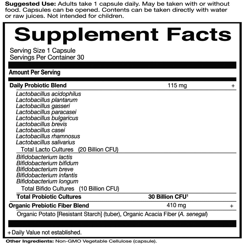 Garden of Life Dr. Formulated Probiotics Once Daily features a blend of 14 different probiotic strains that are chosen for their ability to support the digestive and immune systems. Each serving of Once Daily delivers 30 billion probiotic organisms in each serving. Dairy and soy free.