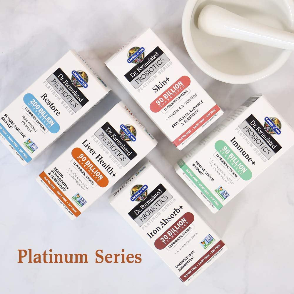 Garden of Life Dr. Formulated Probiotics Platinum Series Liver Health+ 90 Billion CFU D, One a Day Probiotic for Healthy Detoxification & Elimination Support, Vegan, Gluten Free, 30 Capsules