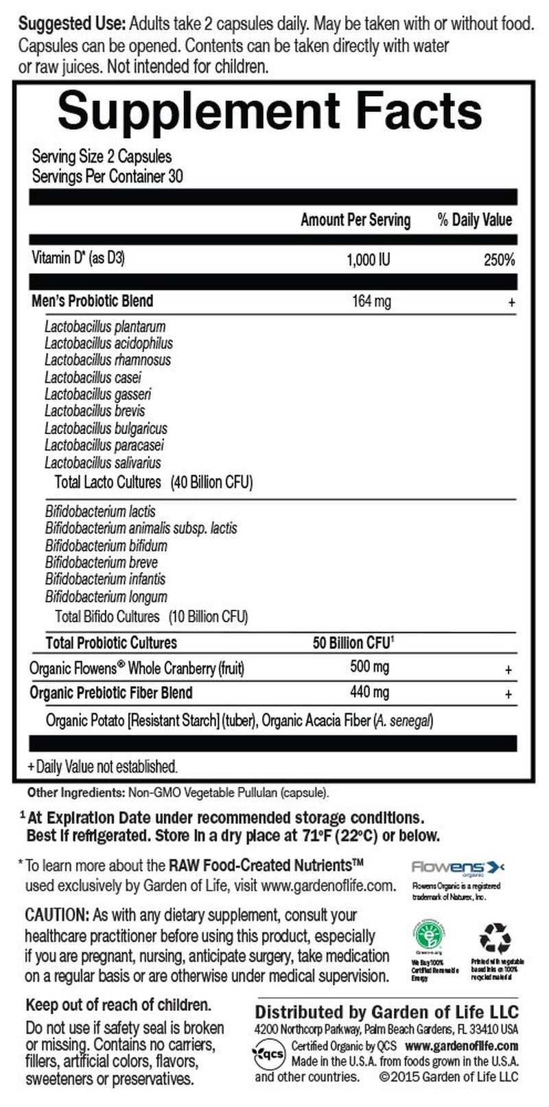 - Probiotic with Cranberry: This prostate supplement for men contains organic cranberry powder and whole food vitamin D3 for prostate support and urinary tract support.
