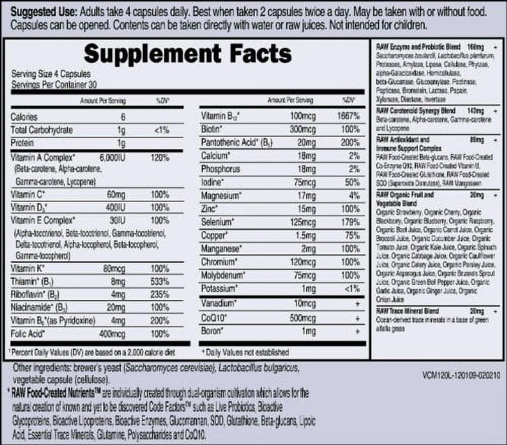 - RAW MULTIVITAMIN: Vegetarian, gluten free, and dairy free whole food multivitamin, with no binders or fillers