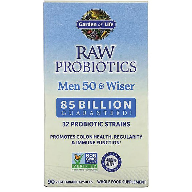 Garden of Life RAW Probiotics Men 50 & Wiser is a RAW, full spectrum, whole food probiotic formula specifically designed to meet the unique needs of men over 50. RAW Probiotics Men 50 & Wiser offers 32 original probiotics, including L. fermentum and B. animalis sub. Lactis, specifically formulated for men over 50 to support immune function and healthy cholesterol levels already in the normal range. RAW Probiotics Men 50 & Wiser also delivers probiotic-created vitamins, minerals, and prebiotics as well as dairy-digesting enzymes to help break down lactose and casein. RAW Probiotics Men 50 & Wiser goes beyond probiotics offering a broad range of benefits specifically targeted for men over 50. RAW means our probiotics are uncooked, untreated, unadulterated; with no binders or fillers and no carriers such as maltodextrin or dextrose.