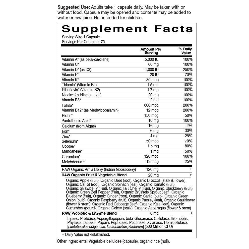 Garden of Life Vitamin Code Raw One for Women, Once Daily Multivitamin for Women - 75 Capsules, One a Day Women, Vitamins, Fruits, Veggies, Probiotics for Womens Health, Vegetarian, Gluten Free 75 is backordered and will ship as soon as it is back in stock.
